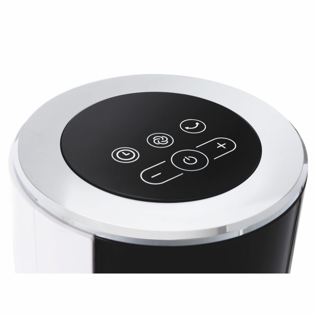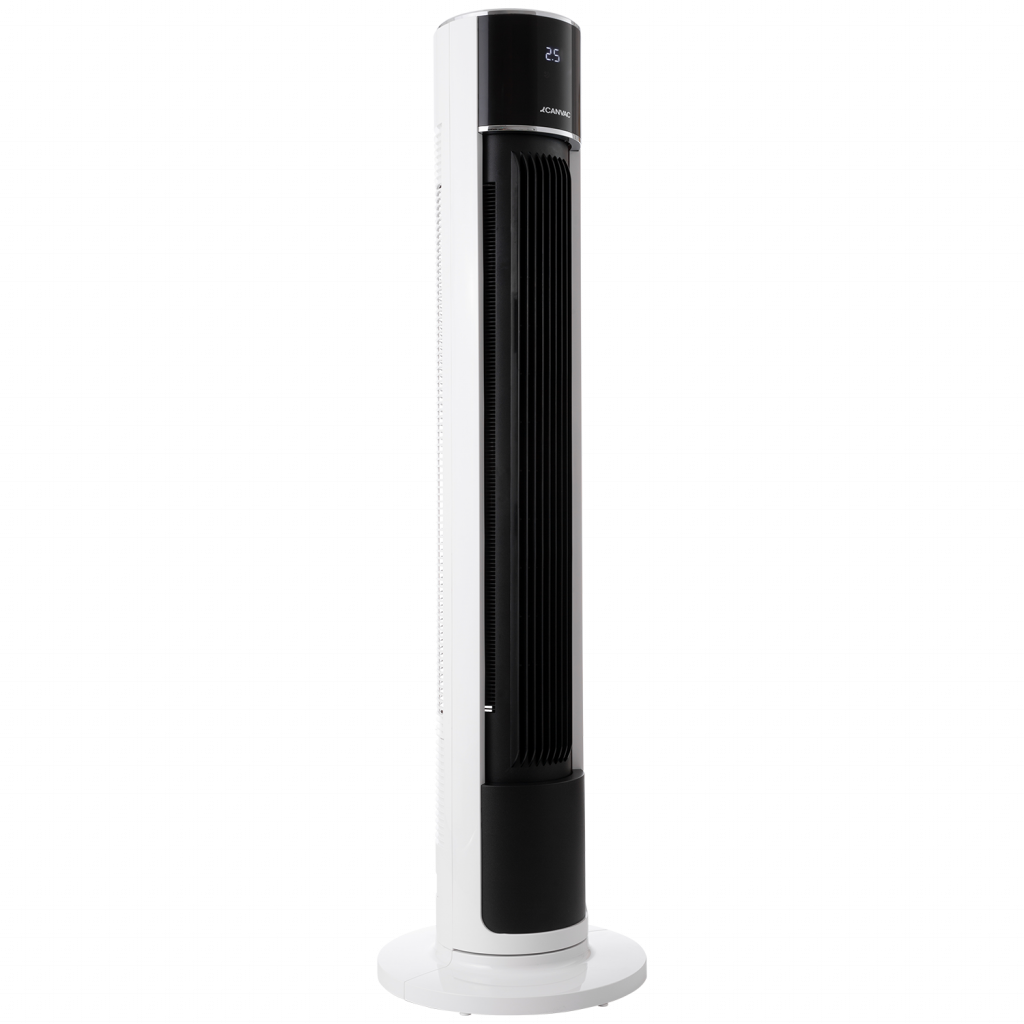 Pelarfläkten från Canvac har en svart design och LED-display. Den styrs via en fjärrkontroll och det finns sex olika hastighetslägen att välja mellan.
