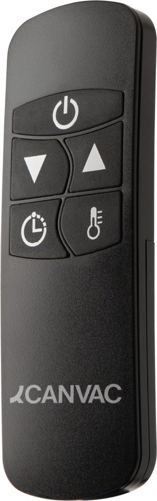 Canvac infravärme CIV5210S är ett värmeelement med två effektlägen och effekt på 2000 W. Elementet styrs med hjälp av fjärrkontroll eller med knappen på enheten, för varje knapptryckning ändras effektinställningen. Däremot måste timerfunktionen ställas in med fjärrkontrollen.
