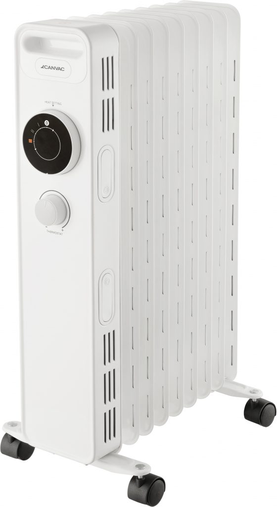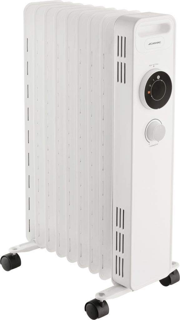 Oljeelementet värmer upp den lokala luften men du kan enkelt flytta och omplacera det efter behov med hjälp av hjulen på undersidan.